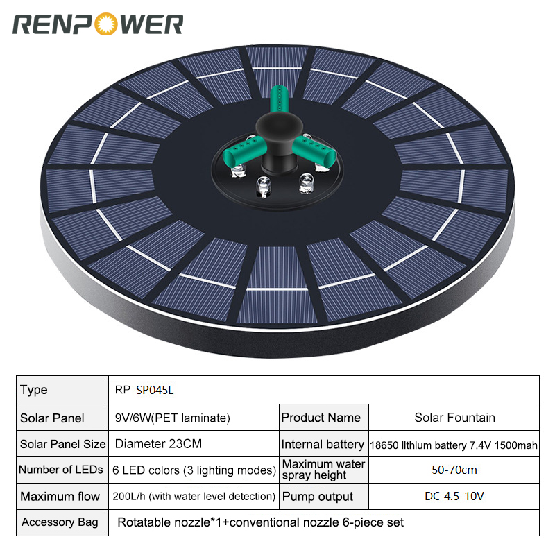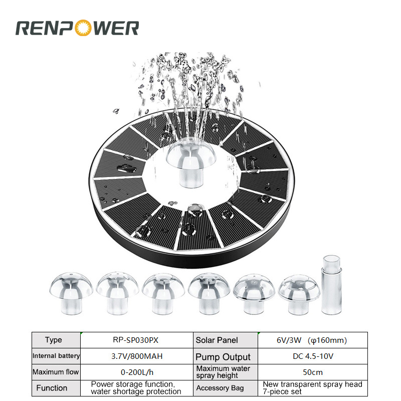 Μινιατούρα ηλιακού κήπου 1,5W Αντλία βρύσης DC DC Ηλιακή μικροσκοπική αντλία διακόσμησης πισίναςΗ ηλιακή πηγή είναι μια συσκευή βρύσης τοπίου που χρησιμοποιεί ηλιακή ενέργεια για να οδηγήσει μια αντλία νερού για να αντλήσει νερό. Αυτό το προϊόν χρησιμοποιεί ηλιακούς συλλέκτες υψηλής απόδοσης και νέα αντλία νερού χωρίς ψήκτρες, η οποία έχει τα πλεονεκτήματα της ταχείας εκκίνησης, της υψηλής απόδοσης και της ισχυρής σταθερότητας. Επιπλέον, το προϊόν δεν απαιτεί εξωτερική παροχή ρεύματος. Δεν είναι μόνο εύκολο να εγκατασταθεί και να λειτουργήσει, αλλά και ασφαλές, αξιόπιστο, εξοικονόμηση ενέργειας και φιλικό προς το περιβάλλον. Το προϊόν χρησιμοποιείται ευρέως σε μέρη όπως βρύσες, βρύσες, βρύσες και κυκλοφορία νερού δεξαμενών ψαριών.