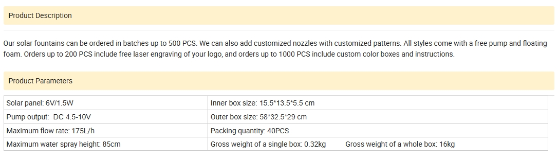10W Ηλιακή DC έξοδος κήπου πηγή βρύσης αντλία πτηνών λουτρών υπαίθρια ηλιακή πηγή υψηλής ισχύος